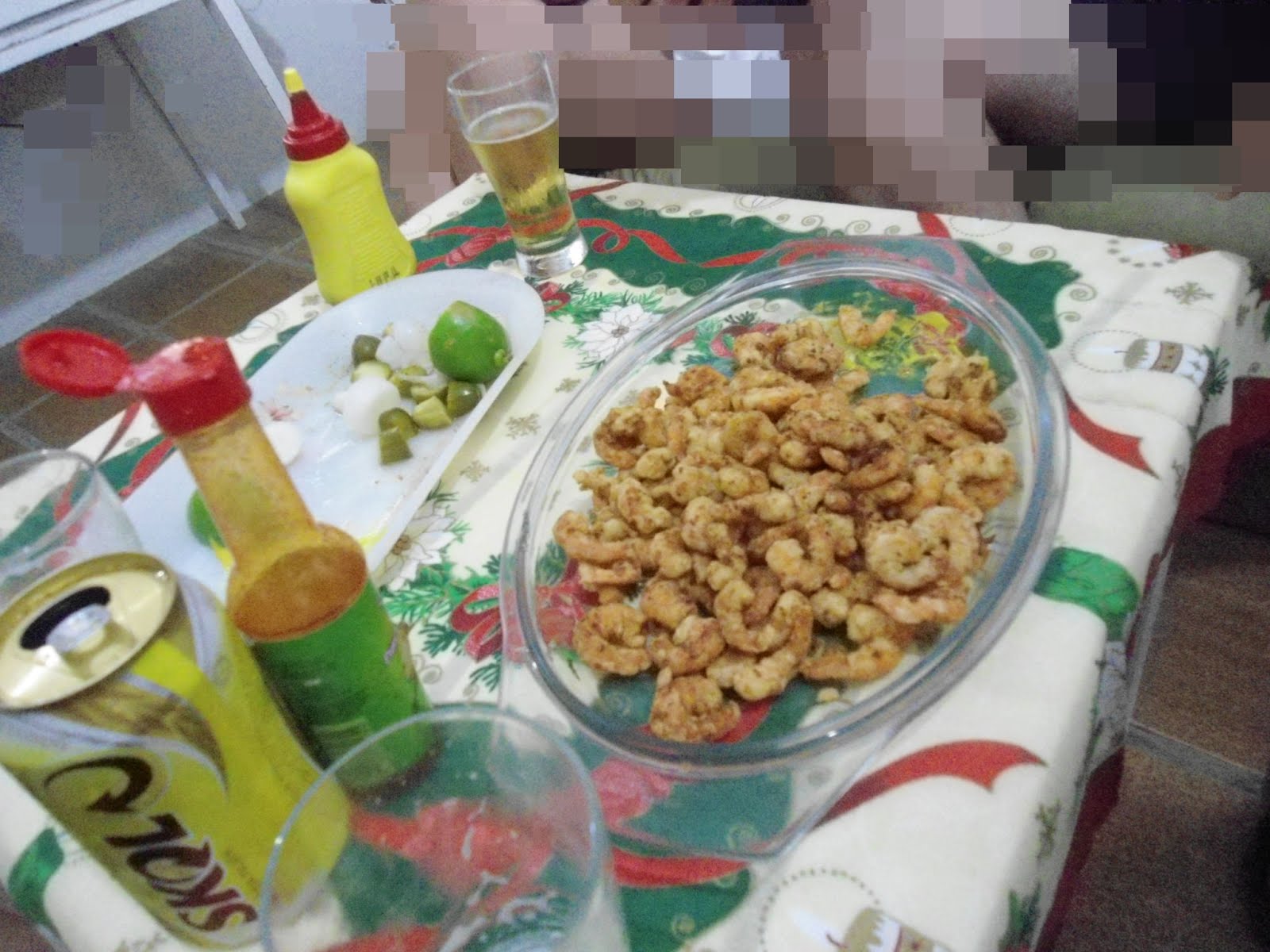 Estava eu, inocentemente, retribuindo sua visita da CVC e como sou recebida? Com camarões fritinhos e cerveja em plena sexta feira! Ai meu Deeeeeussss!!!